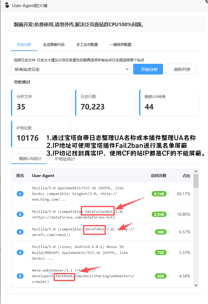 宝塔面板使用蜘蛛池泛目录站群造成cpu使用率100%和负载状态100%的解决办法-User-Agent过滤篇